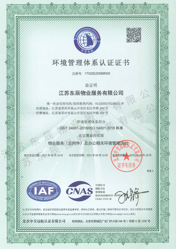 2022-2025年環(huán)境管理體系認(rèn)證證書(shū)