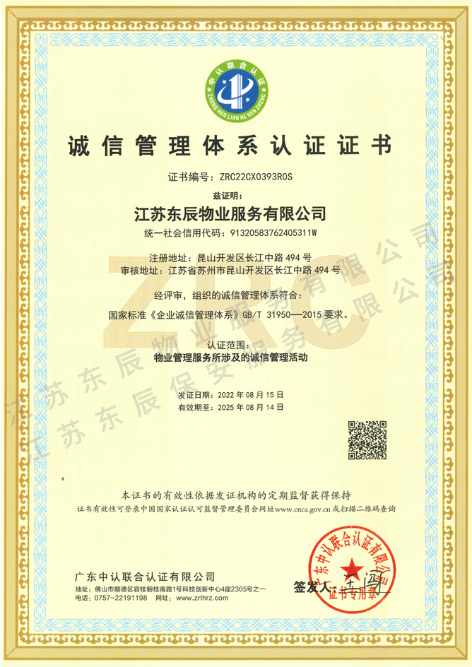 2022-2025年誠(chéng)信管理體系認(rèn)證證書(shū)